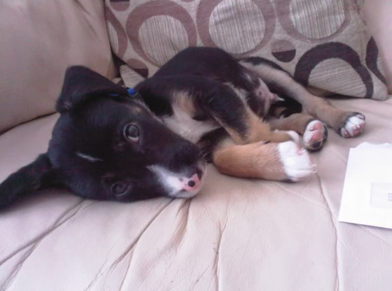 I got a 7 week old puppy yesterday. He is a crossbreed and the dogs home wasnt sure what breeds he could be. Any one got any idea? some of the pictures arent very good but he doesnt stay still very long lol
